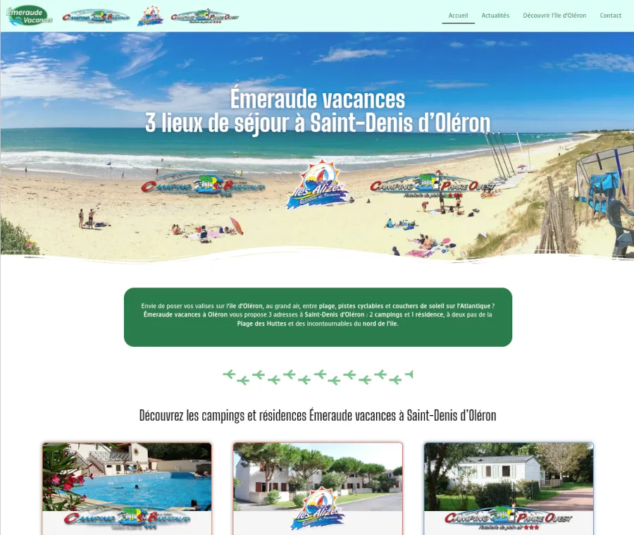Émeraude Vacances franchit une nouvelle étape avec la mise en ligne d’un nouveau site réunissant désormais ses trois établissements : le Camping Barataud, la Résidence Les Alizés et le Camping Phare Ouest. Cette nouvelle plateforme a donc été pensée pour simplifier la découverte des offres du groupe. Cela permet ainsi