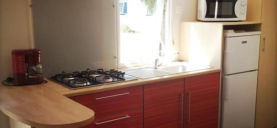 Le mobil-home Super Mercure de 27,5 m² est un hébergement confortable et bien agencé, pensé pour offrir un séjour agréable en bord de mer. Avec ses 2 chambres, il convient parfaitement à un couple ou à une petite famille à la recherche d’un mobil-home à louer près de la plage des Huttes.