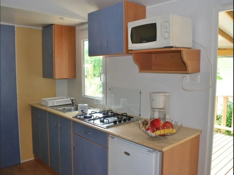 Le mobil-home Super Mercure offre un cadre de séjour agréable, pensé pour profiter de vacances simples et reposantes sur l’île d’Oléron. Son agencement fonctionnel permet de vivre le séjour en toute fluidité, avec un vrai confort au quotidien. Sa terrasse en bois d’environ 20 m² apporte un plus très appréciable pour prendre l’air, se relaxer et profiter pleinement des journées ensoleillées.
